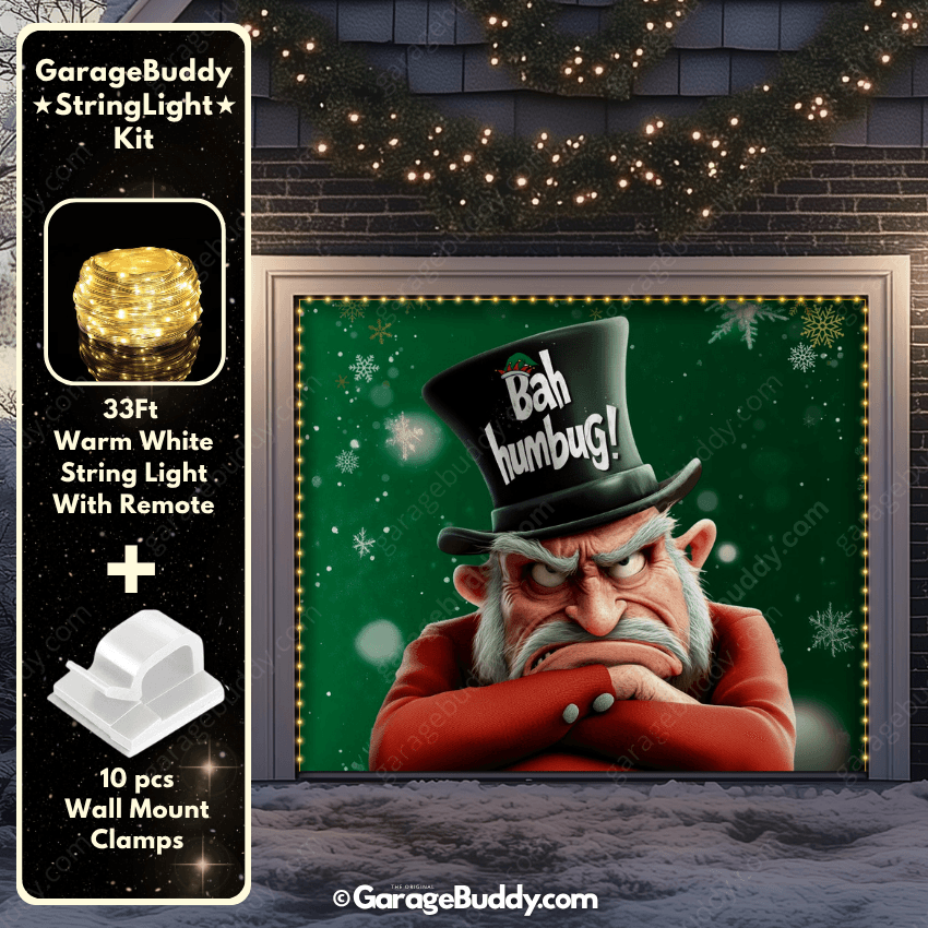 You now have the option to add the GarageBuddy string light kit at 50% off and turn your garage into a true showstopper. Pair your Bah Humbug Holiday Garage Door Cover with glowing outdoor Christmas lights to make your home the talk of the block.