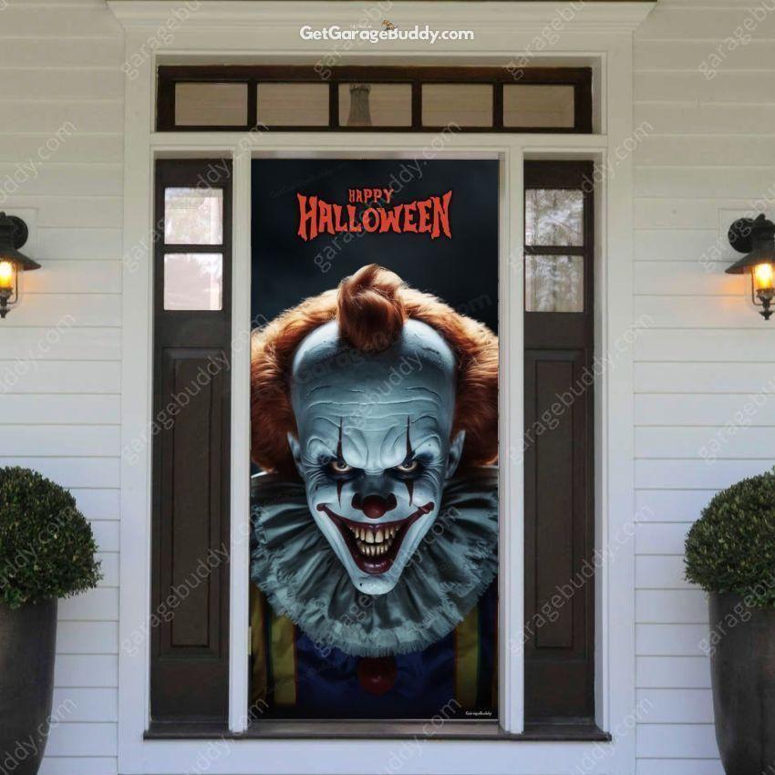This Halloween, unleash pure fear with our Creepy Clown Halloween Front Door Cover—the ultimate upgrade to your front door Halloween decorations. With its sinister grin and haunting detail, this terrifying design will have trick-or-treaters hesitating before they dare knock. It’s one of the boldest Halloween decoration ideas to transform your entryway into a chilling nightmare.