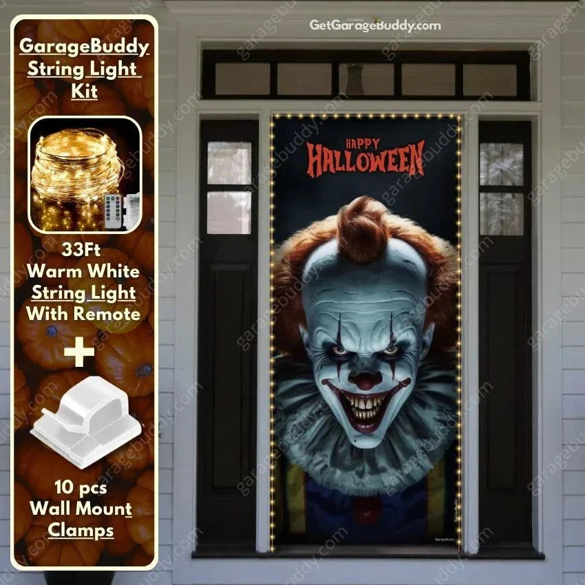 Give your family, friends, and party guests the ultimate backdrop for unforgettable Halloween photos. Paired with pumpkins, eerie lighting, and chilling Halloween porch decorations, the Creepy Clown Front Door Cover turns your moments into memories—and makes your front door the star of the neighborhood.
