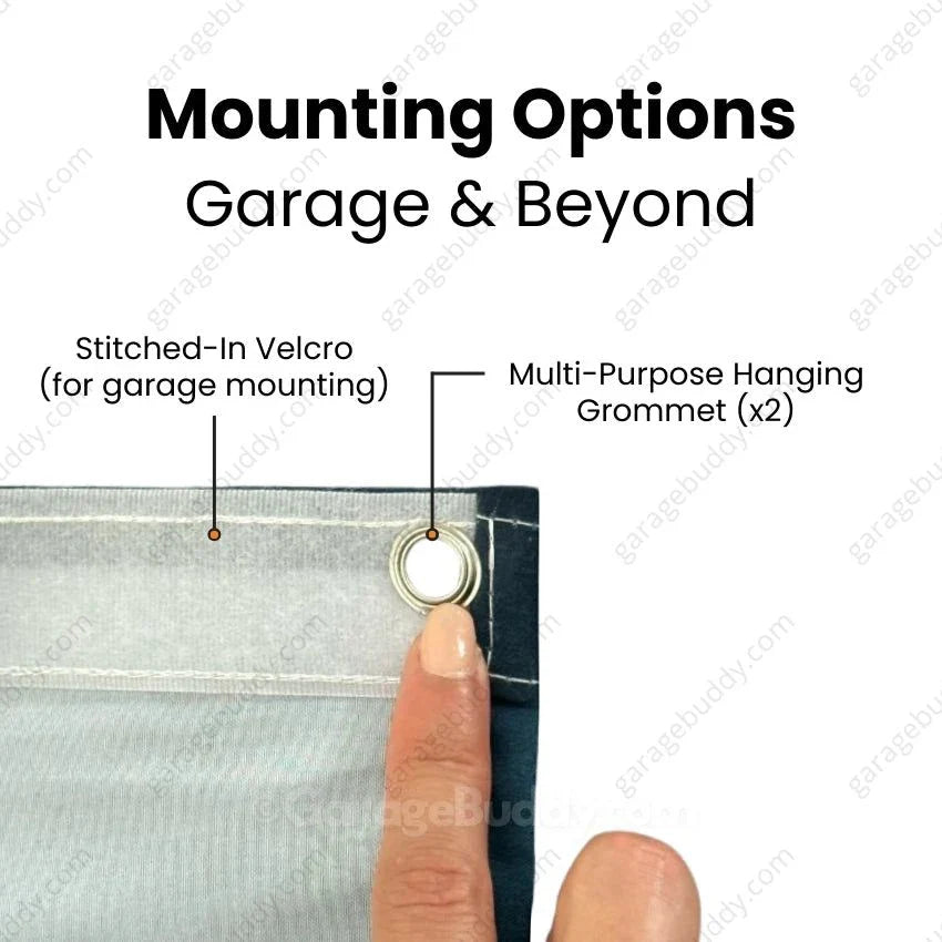 Every GarageBuddy now comes with a FREE upgraded installation kit that includes stitched-in flat elastic bands for the bottom corners and Velcro rolls for the top. Simply stick the top of the cover to your door using Velcro, hook the elastic bands to the second hinge behind your garage door, and voilà! You’re ready to show off a festive garage door cover that makes your house the star of the block—before you can even say “Ho Ho Ho!”