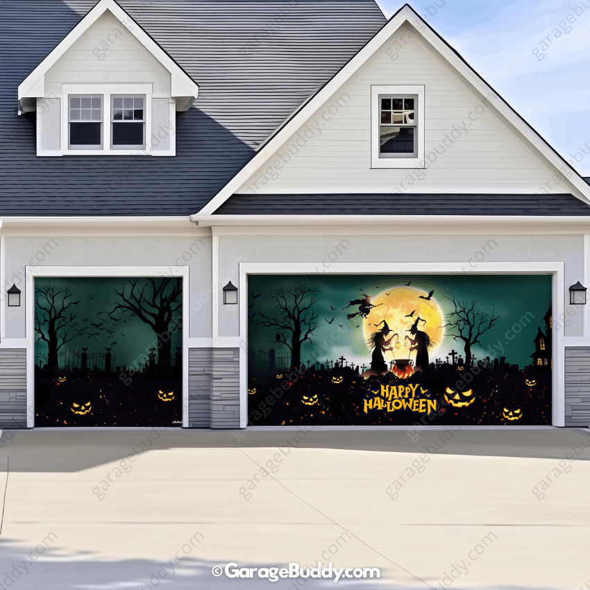 Picture the looks on their faces when they walk past your glowing Graveyard Scene garage door cover. Suddenly, Susie’s pumpkins look tame compared to your bone-chilling haunted display. With every glance, your spooky garage door cover cements your home as the scariest, most magical stop on the block this Halloween.