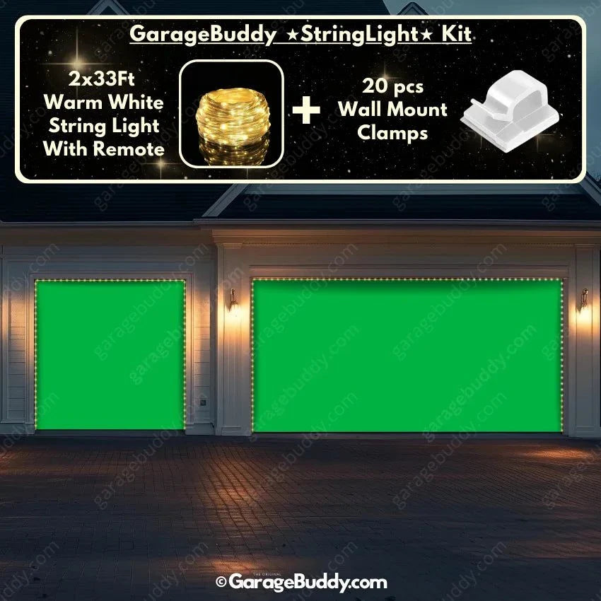 You now have the option to add the GarageBuddy string light kit to your order at 50% Off and turn your garage into a true show stopper. The kit includes 1x 33 ft warm white string light, a remote control, and 10x sticky wall mount clamps. The 2-door garage option comes with 2 string light kits. The lights work on three AA batteries (not included), so you don't need to run around finding electrical outlets.