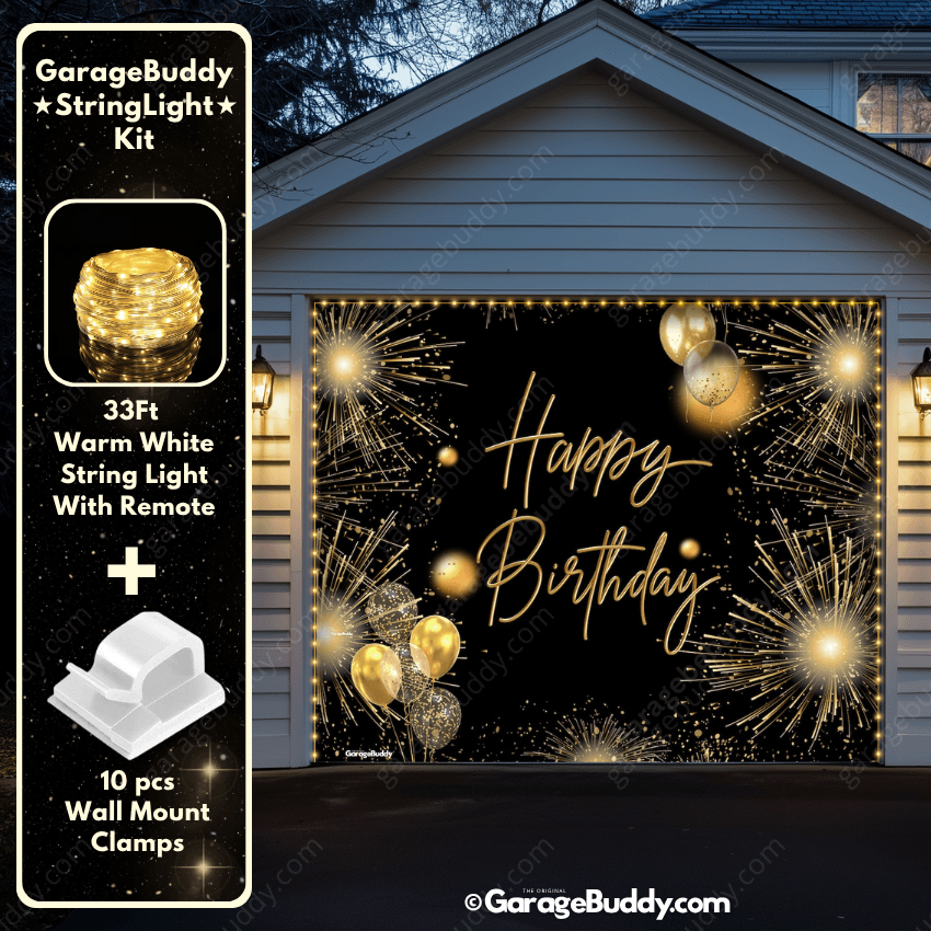 Happy Birthday Gold | GarageBuddy Garage Door Cover
