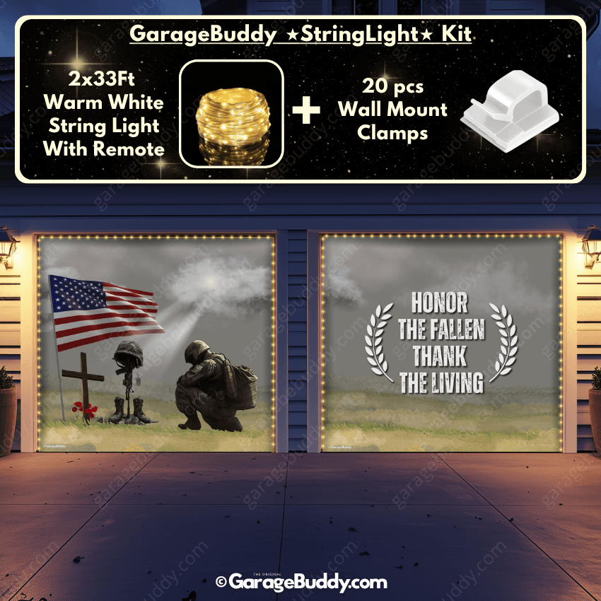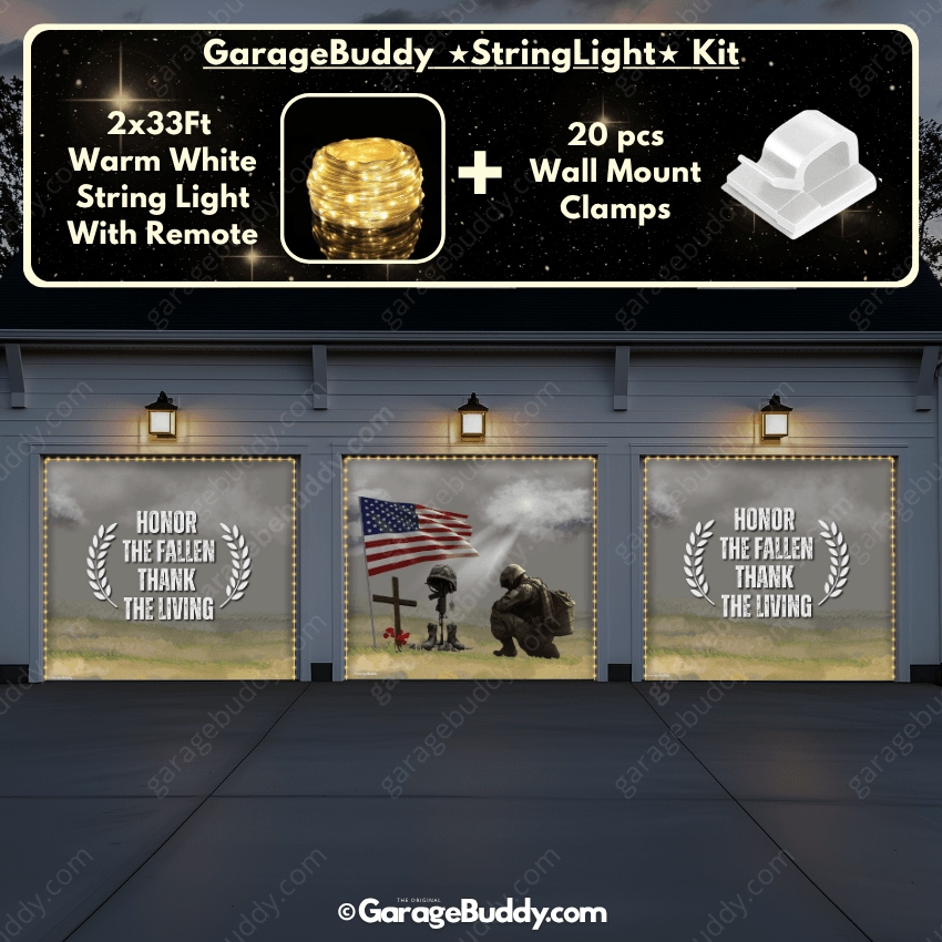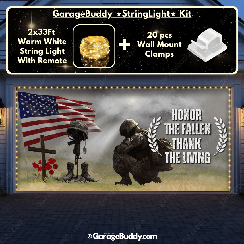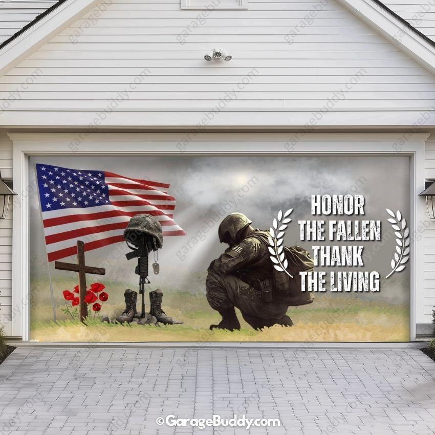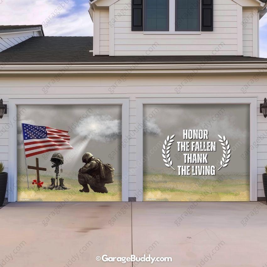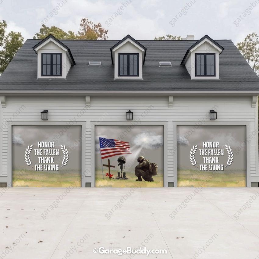 🦅🇺🇸 What are you waiting for? Give your garage a patriotic hug with the Honor The Fallen | Patriotic Garage Door Cover from GarageBuddy™ and let your home shine with pride this season.