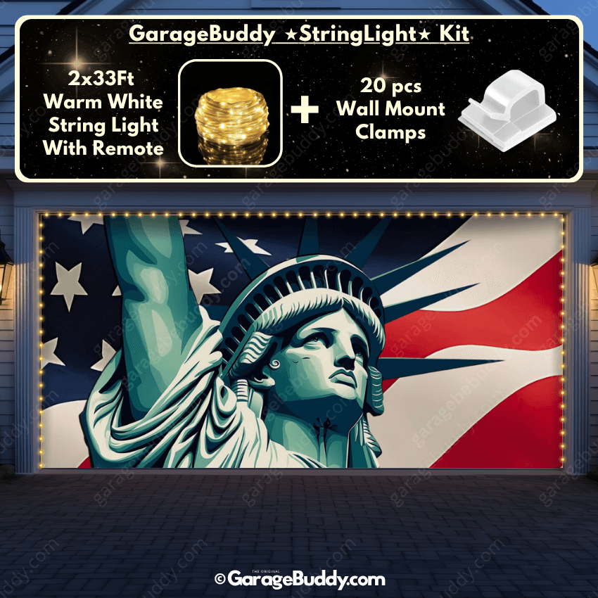 You now have an option to add the GarageBuddy string light kit to your order at 50% Off and turn your garage into a true winter wonderland. The kit includes 1x 33ft warm white string light, a remote control and 10x sticky wall mount clamps. The 2-Door garage option comes with 2 string light kits. The lights work on three AA batteries (not included), so you don't need to run around finding electrical outlets.
