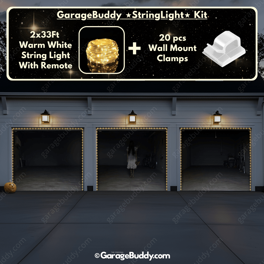 You now have the option to add the GarageBuddy string light kit to your order at 50% Off and turn your garage into a true showstopper. Pair it with a Spooky Garage Door Cover to create unforgettable outdoor Halloween decorations that will wow the entire neighborhood.