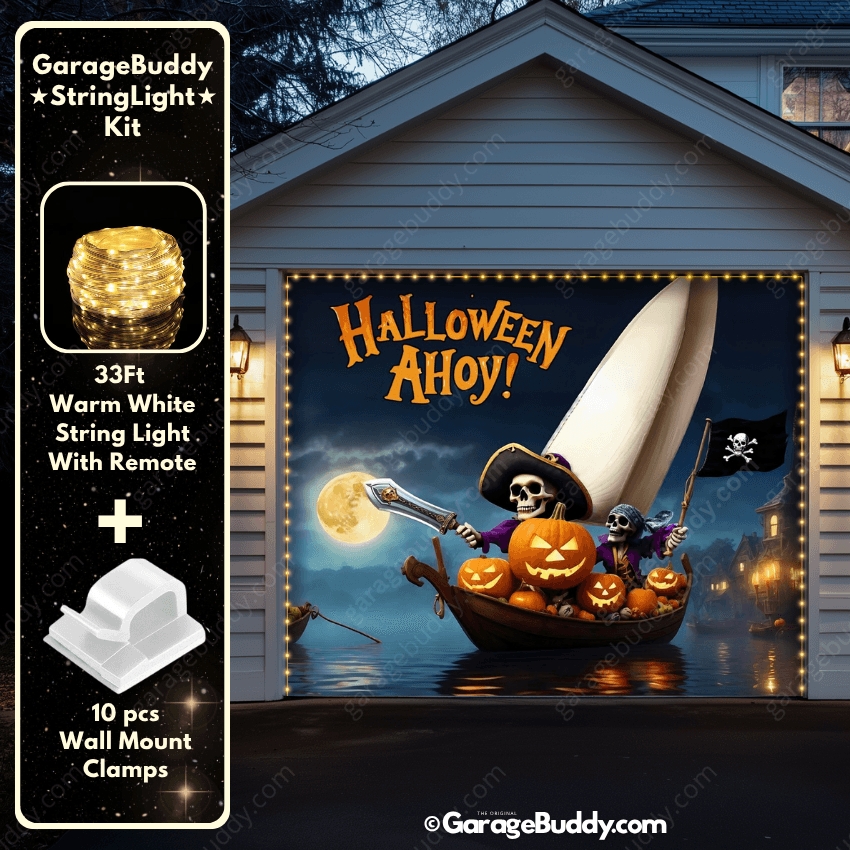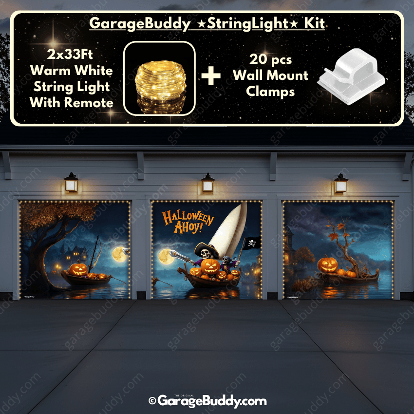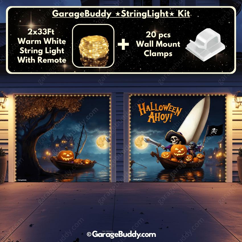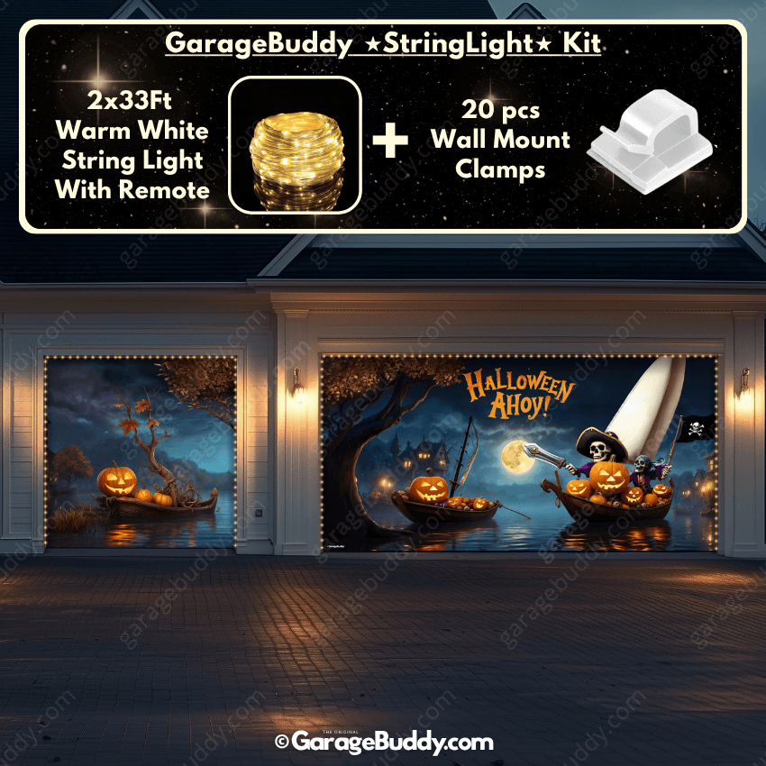 You now have the option to add the GarageBuddy string light kit to your order at 50% Off and turn your garage into a true showstopper. Pairing these lights with a Halloween garage door cover or even a creepy garage door cover makes your home shine brighter and scarier than ever!