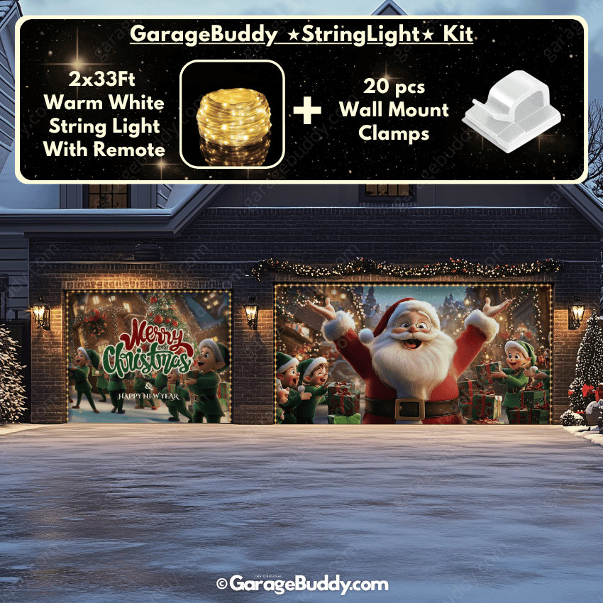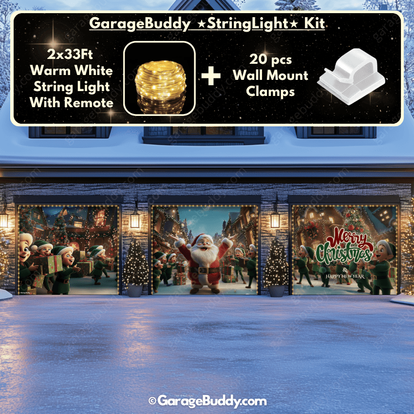 You now have the option to add the GarageBuddy string light kit to your order at 50% off and turn your garage into a true showstopper. Pair your festive garage door cover with warm, glowing outdoor Christmas lights for the ultimate North Pole effect.