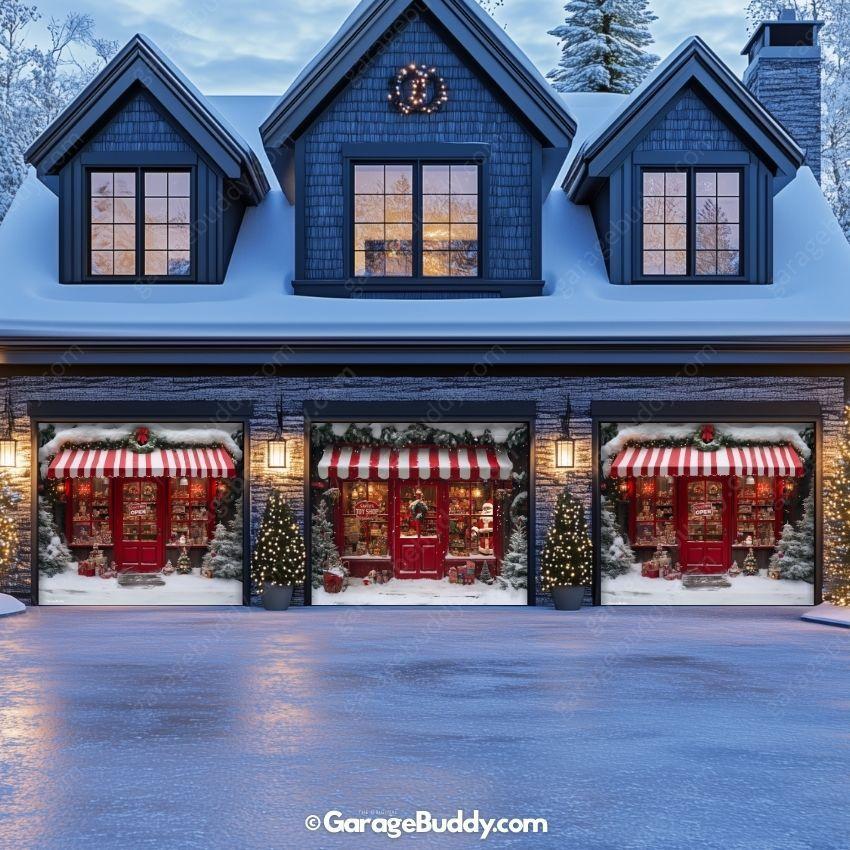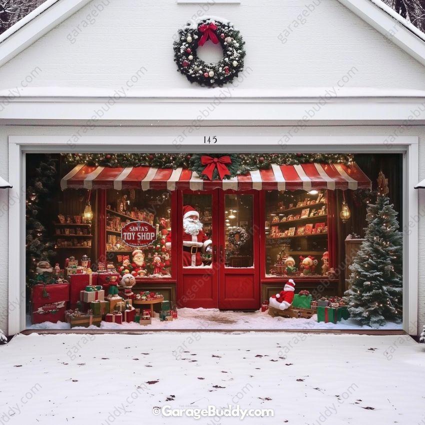 This Santa's Toy Shop Christmas garage door cover instantly transforms your plain garage into a holiday masterpiece that feels straight out of the North Pole.